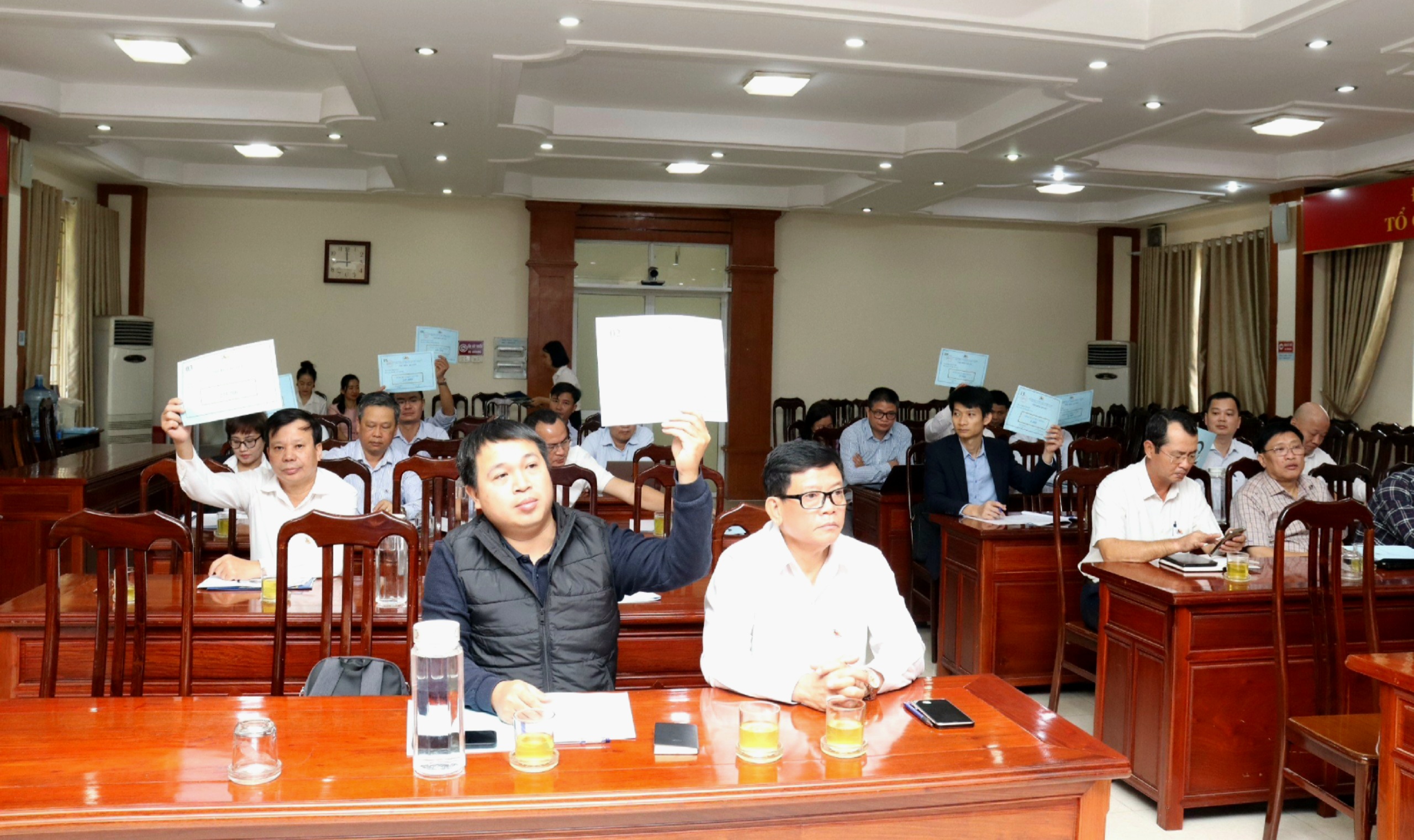 Sau 1/2 ngày làm việc nghiêm túc, trách nhiệm, ĐHĐCĐ bất thường năm 2023 của Tổng công ty đã biểu quyết thông qua Biên bản và Nghị quyết Đại hội.