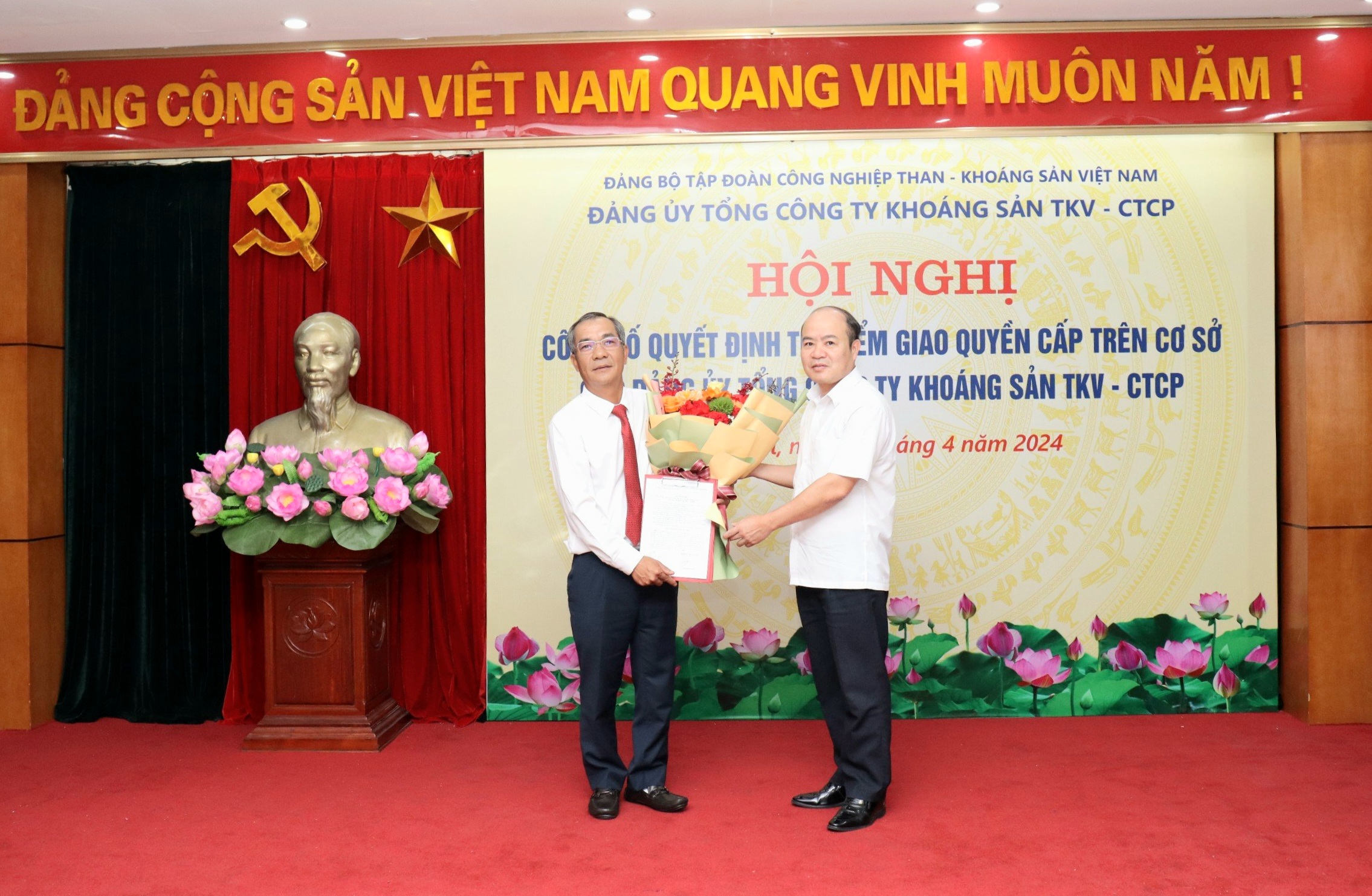 Chiều ngày 01/11/2024 tại trụ sở số 193 Nguyễn Huy Tưởng, Thanh Xuân, Hà Nội Tổng công ty Khoáng sản TKV đã tổ chức Hội nghị công bố và trao các quyết định về công tác cán bộ.