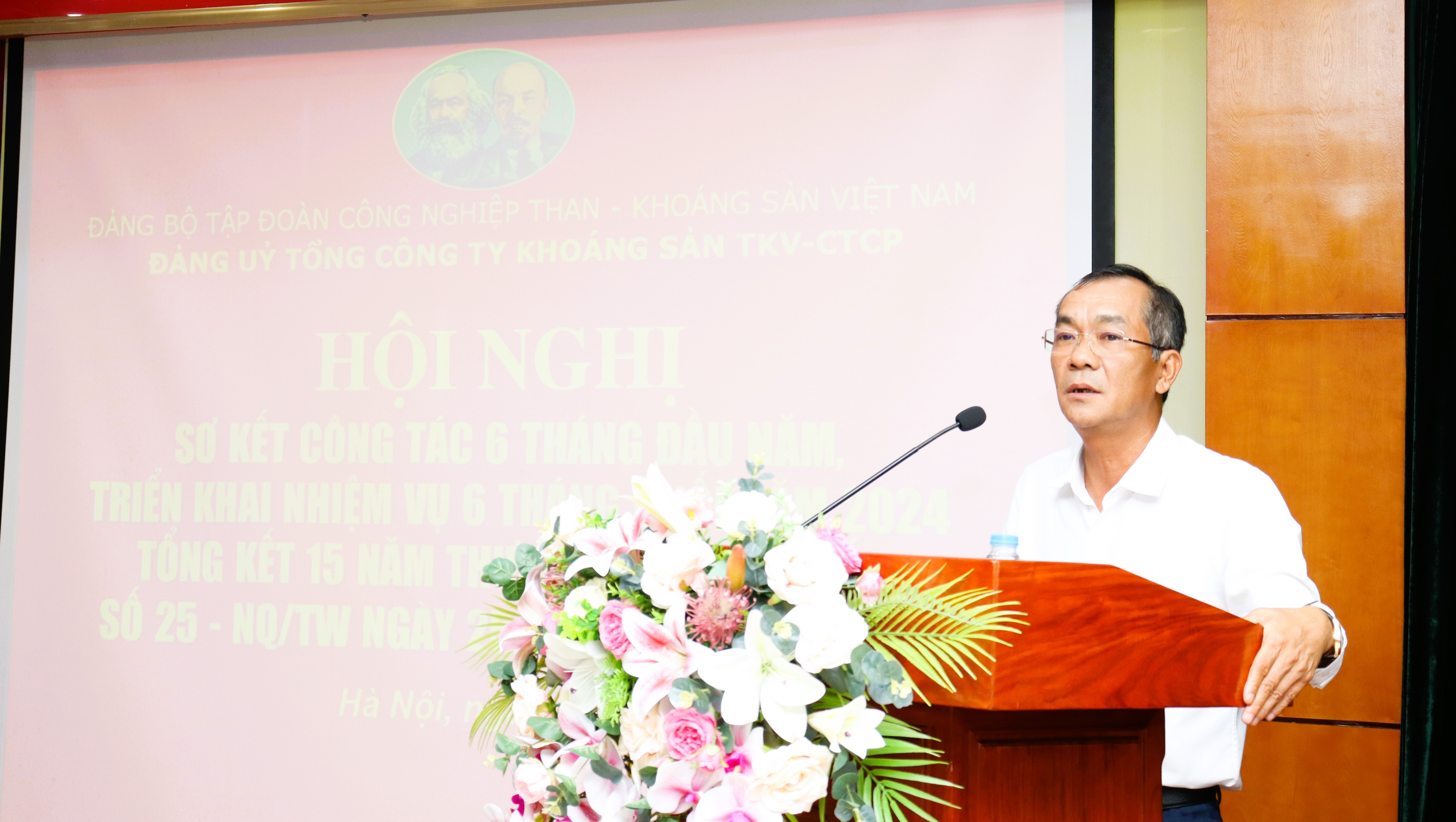 Phát biểu tại Hội nghị, đồng chí Phùng Văn Vịnh, Ủy viên Ban Thường vụ, Chánh văn phòng Đảng ủy TKV đánh giá cao kết quả thực hiện nhiệm vụ chính trị và công tác xây dựng Đảng của Tổng công ty trong 6 tháng đầu năm 2024 cũng như kết quả triển khai thực hiện Nghị Quyết 25-NQ/TW, đồng thời chỉ đạo Tổng công ty cần tập trung thực hiện các nhóm giải pháp trong công tác xây dựng đảng và thực hiện nhiệm vụ chính trị của Đảng bộ TKV và Tổng công ty trong 6 tháng cuối năm. Trong đó cần làm tốt công tác bảo vệ chính trị nội bộ, bảo mật trong doanh nghiệp; tăng cường và chủ động phối hợp với cấp ủy, ban ngành địa phương. Đảng ủy Tổng công ty chỉ đạo các Ban xây dựng Đảng nhanh chóng ổn định tổ chức, tiếp nhận và điều chỉnh, phân công lại lĩnh vực phụ trách. Tổ chức quán triệt cụ thể hóa và triển khai thực hiện Chương trình hành động thực hiện nghị quyết các Hội nghị Trung ương của Đảng. Tập trung đẩy mạnh và làm tốt công tác chính trị, tư tưởng trong cán bộ, đảng viên, người lao động chuẩn bị cho đại hội Đảng các cấp bắt đầu từ năm 2025, tiến tới Đại hội lần thứ XIV của Đảng.