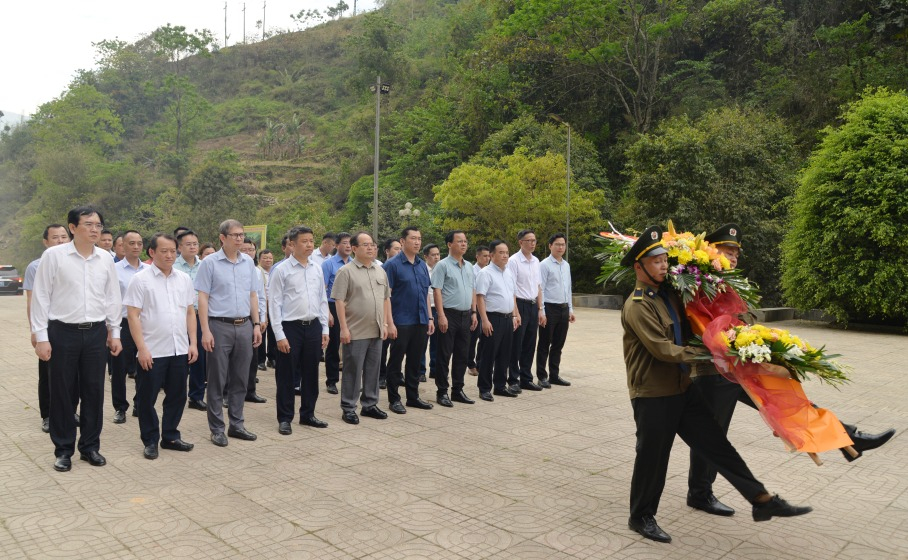 Đoàn công tác đến dâng hoa tại Tượng đài Bác Hồ tại Khu di tích lịch sử truyền thống văn hóa Mỏ thiếc Tĩnh Túc; trực tiếp thực địa khai trường khai thác của Công ty tại Thị trấn Tĩnh Túc (Nguyên Bình).