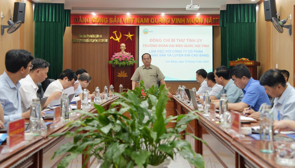 ( 21/04/2025 - 8:11 )Sáng 19/4, đồng chí Quản Minh Cường, Bí thư Tỉnh ủy, Trưởng Đoàn đại biểu Quốc hội tỉnh thăm, làm việc với Công ty Cổ phần Khoáng sản và Luyện kim Cao Bằng.