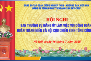 ( 18/07/2025 - 9:55 )Ngày 16/7/2025, tại Hội trường Tổng công ty Khoáng sản – TKV, Ban Thường vụ Đảng ủy Tổng công ty đã có buổi làm việc với các tổ chức Công đoàn, Đoàn thanh niên và Hội Cựu chiến binh Tổng công ty về kết quả hoạt động 6 tháng đầu năm và triển khai nhiệm